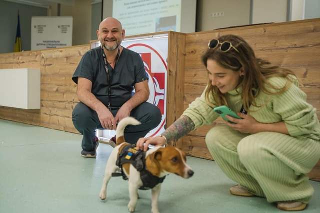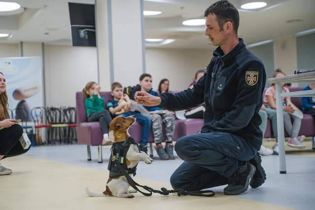 Українська знаменитість серед песиків – Патрон прибув разом зі службовцями ДСНС до українців і українок, що лікуються в Охматдиті. За час війни Патрон став справжнім талісманом чернігівських піротехніків, оскільки його робота дуже важлива у їхній роботі – пес щодня допомагає своєму господарю-рятувальнику у боротьбі з вибухонебезпечними наслідками воєнних дій.